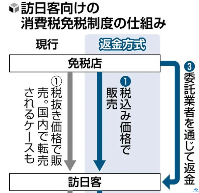 目前的免税制度是,游客入境日本后,在日本国内免税店购买商品时直接可以免税。但由于近几年转卖行为泛滥,不少人在日本国内按照免税价格购买完商品后,直接转手卖掉或许报酬。为了应对此行为,日本政府决定实施“先购买后退税”。比如,访日游客在免税店购物时需先支付含消费税的金额。在离开日本出境时,通过机场海关确认所购商品没问题,再将消费税部分通过事先登记的信用卡或以现金方式退还。